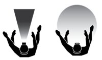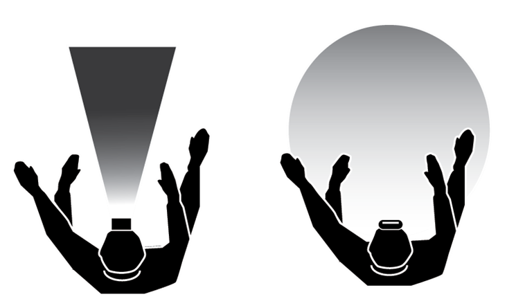 - Pallomainen valaisukuvio valaisee työskentelyalueen erittäin laajalta alueelta ja tehokkaammin kuin normaali otsavalaisin