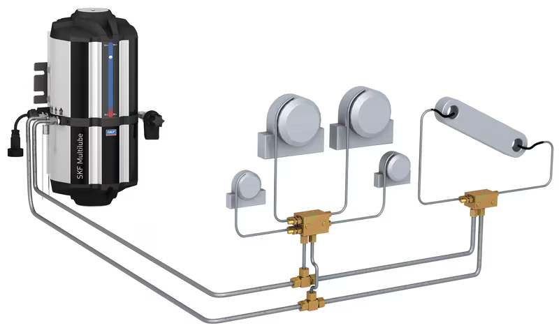 Voiteluaineen jakaja SKF DuoFlex kaksilinjaisiin voitelujärjestelmiin.